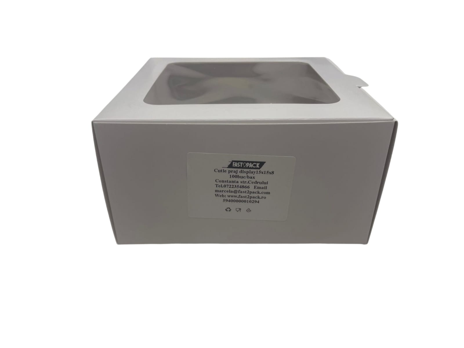 ✅ Dimensiuni Perfecte – Cu dimensiunile de 15 x 15 x 8 cm, aceasta cutie este perfecta pentru deserturi medii, oferind suficient spatiu pentru prajituri, mini-torturi sau alte delicatese.