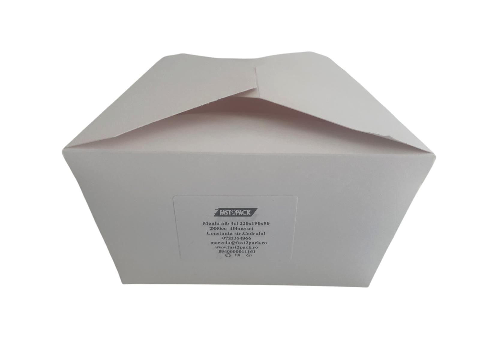 Cutia de meniu din carton alb de 4cl este soluția perfectă pentru restaurante, fast food-uri, și servicii de catering, oferind o metodă eficientă și elegantă de servire a preparatelor. Fie că este vorba de prânzuri de afaceri, comenzi la pachet sau evenimente speciale, aceste cutii sunt ideale pentru a oferi o prezentare ordonată și profesională pentru mesele tale.