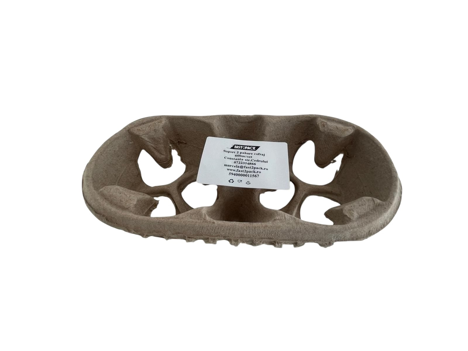 Suportul din cofraj pentru doua pahare este confectionat din celuloza si este ideal pentru regimul takeaway. Suporta pahare de diferite tipuri, forme si dimenisuni fiind ideal pentru transportul si prezentarea produselor dumneavoasta alimentare sau nealimentare in conditii optime de siguranta si igiena.